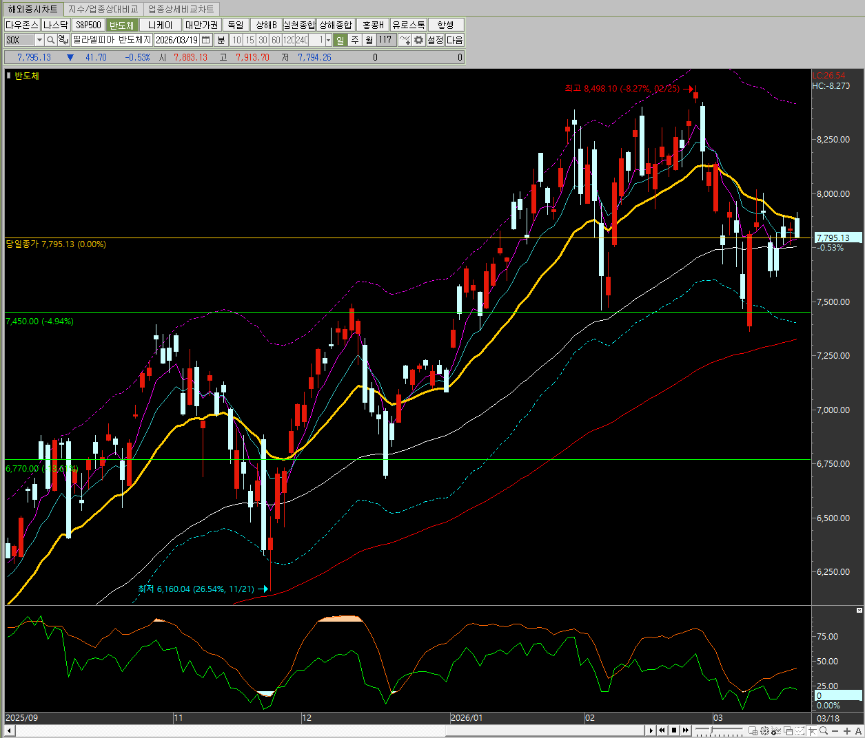 필라델피아 반도체 지수 역시 -0.53% 하락하며 기술주 중심의 약세가 나타났습니다.
