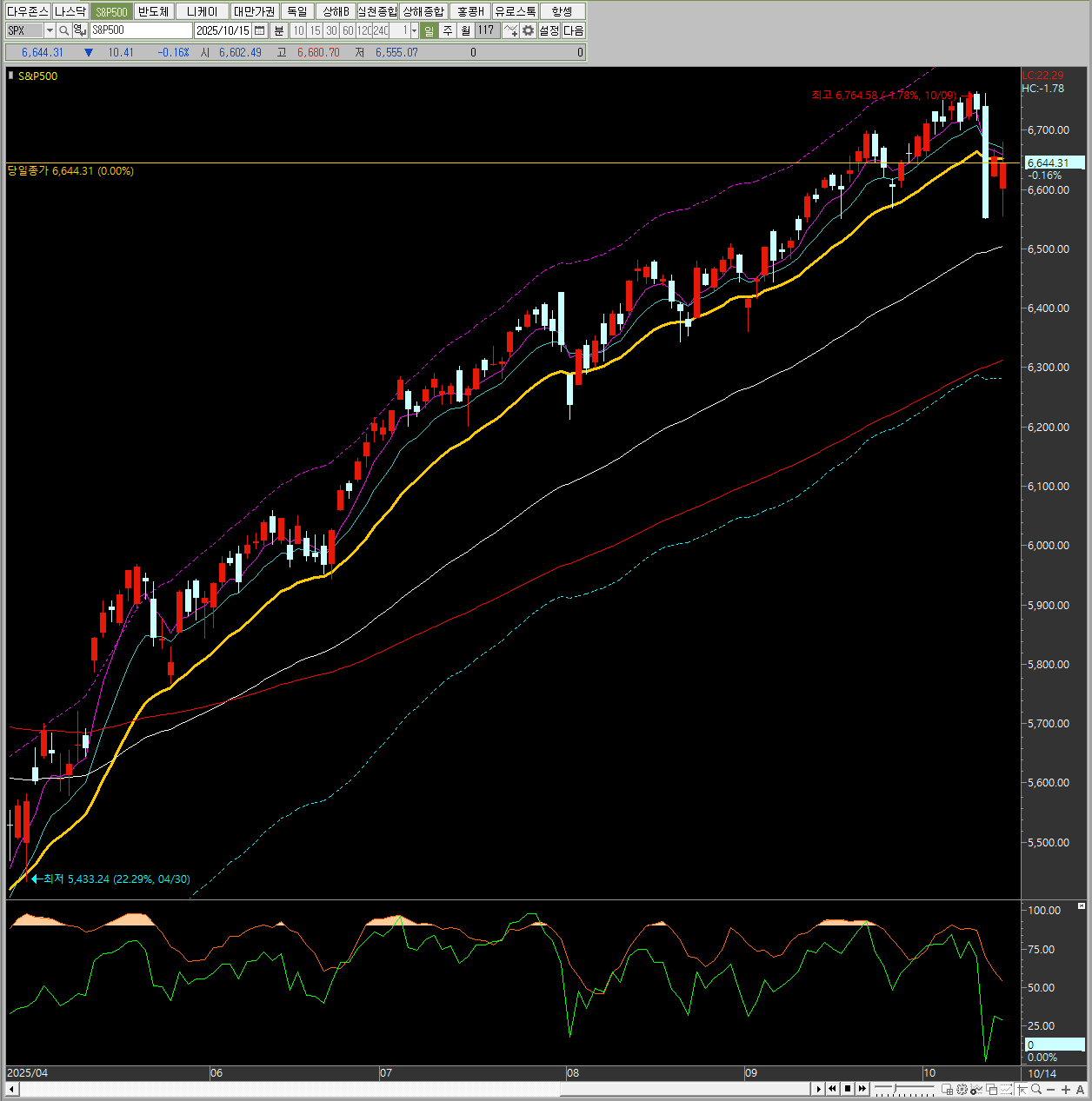 이러한 기술주 약세와 달리 전통 산업 중심의 **다우존스 지수**는 +0.44% 상승하며 시장의 엇갈린 흐름을 보여주었습니다.