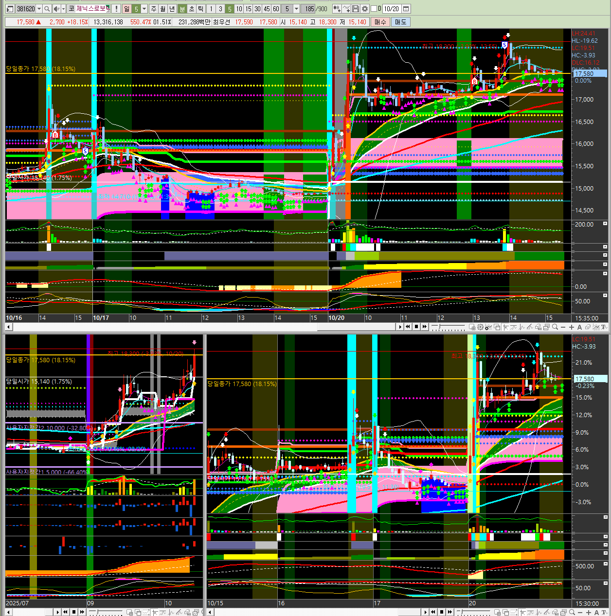 2025년 10월 20일 월요일 오늘 시장의 주도주를 분석해 보겠습니다.📊 오늘 시장 주요 종목 정리