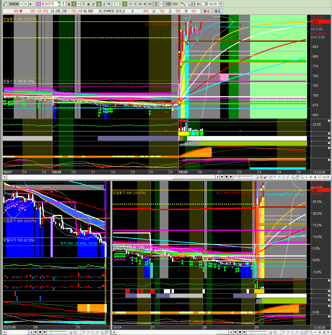정규장 종가 기준 500억이상 변동성이 있는 종목 또는 상한가.1. 빛과전자