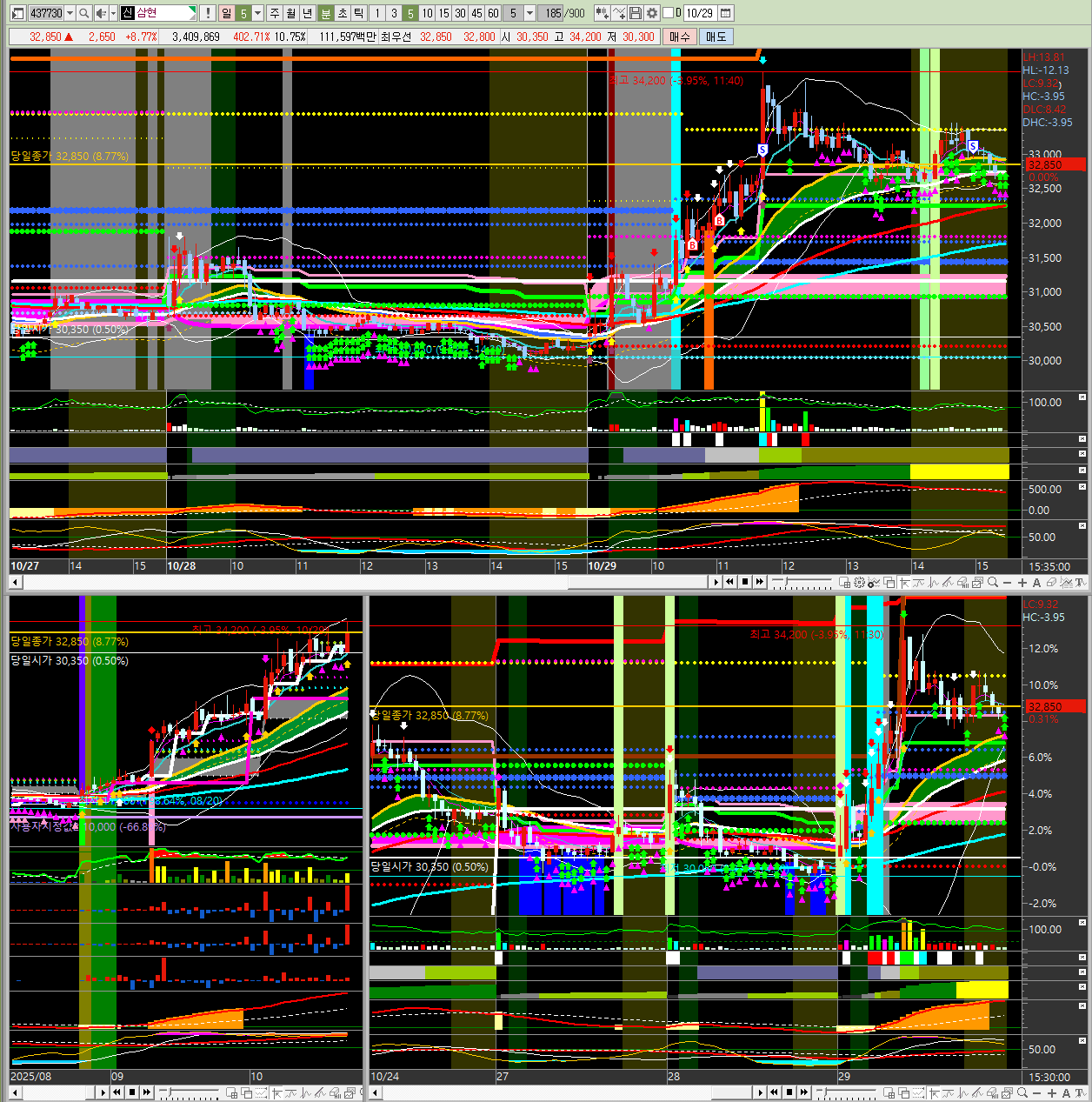 - 주요 모멘텀 : 반도체 및 5G 관련 테마가 강세를 보이면서 투자 수요가 몰려 주가가 급등했습니다.