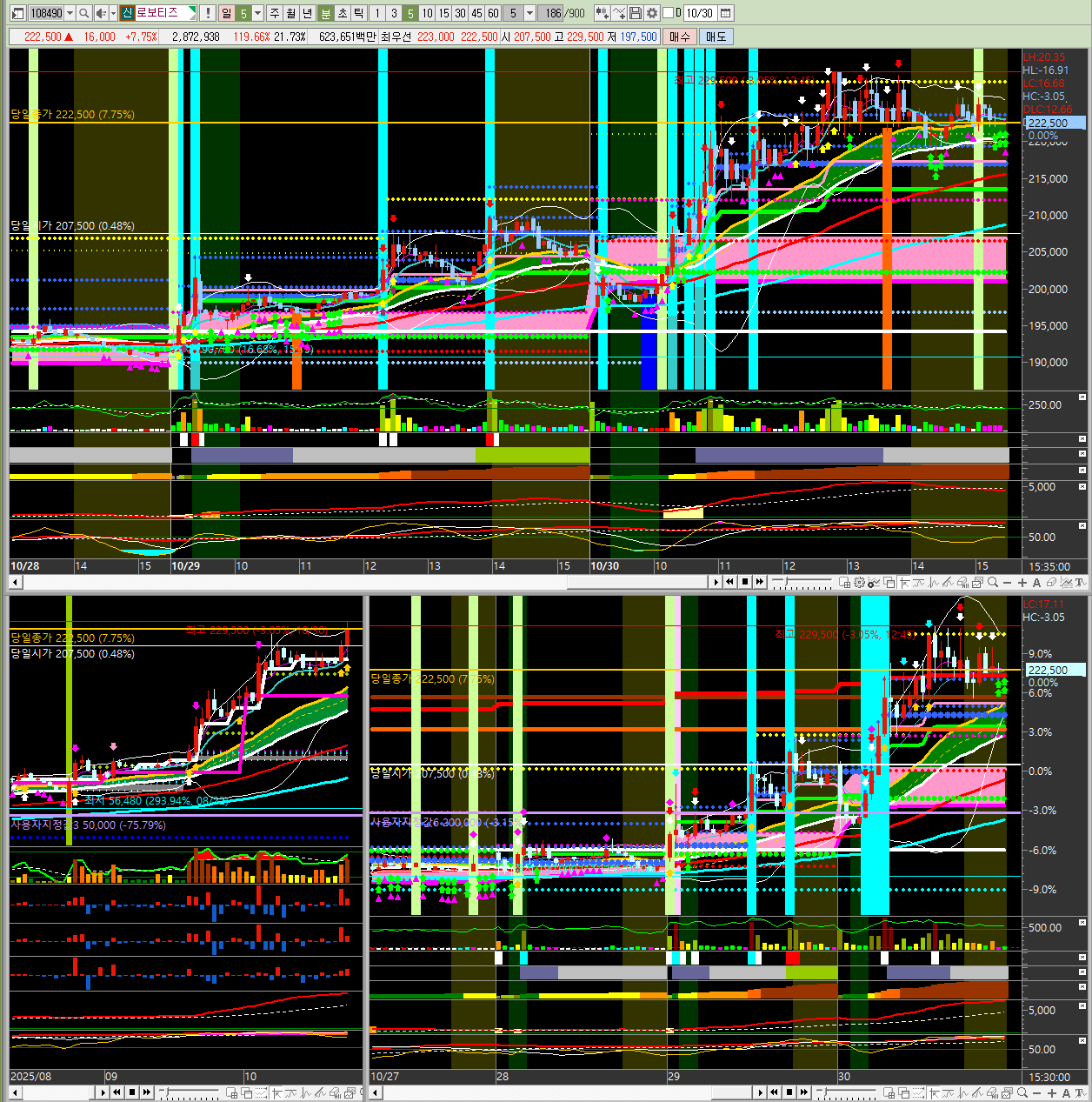 2025년 10월 30일 목요일 오늘 시장의 주도주를 분석해 보겠습니다.📊 오늘 시장 주요 종목 정리