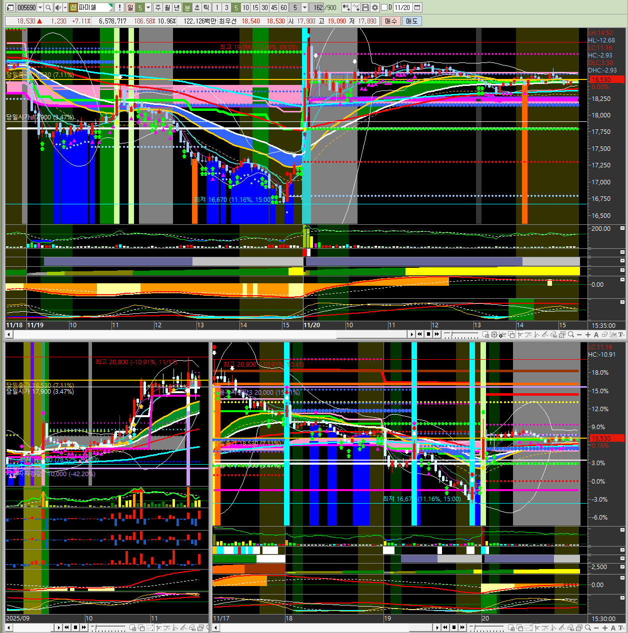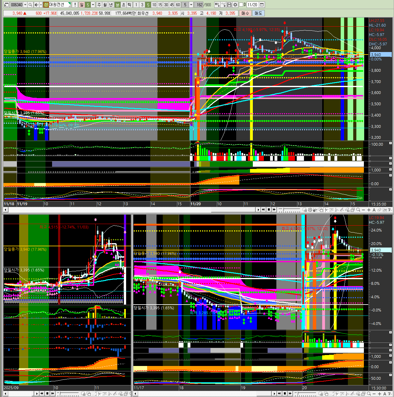2025년 11월 20일 목요일 오늘 시장의 주도주를 분석해 보겠습니다.📊 오늘 시장 주요 종목 정리