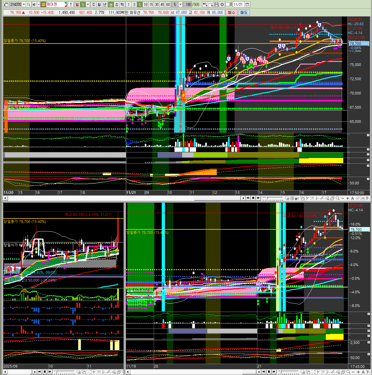 2025년 11월 21일 금요일 오늘 시장의 주도주를 분석해 보겠습니다.📊 오늘 시장 주요 종목 정리