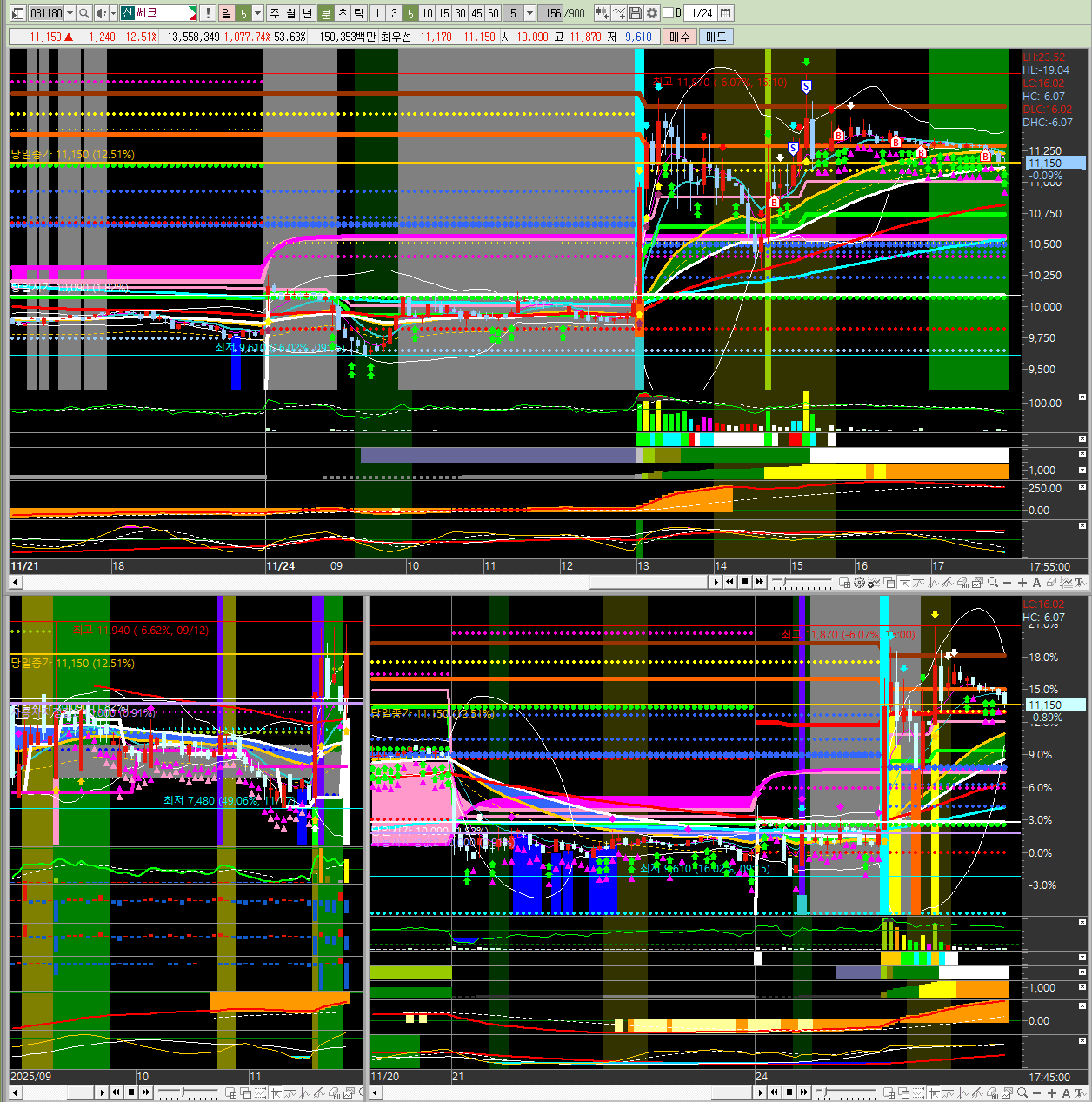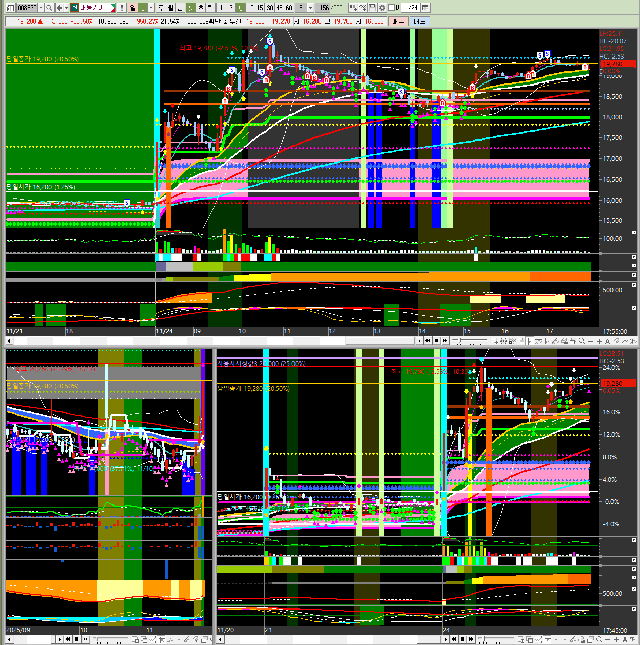 2025년 11월 24일 월요일 오늘 시장의 주도주를 분석해 보겠습니다.📊 오늘 시장 주요 종목 정리