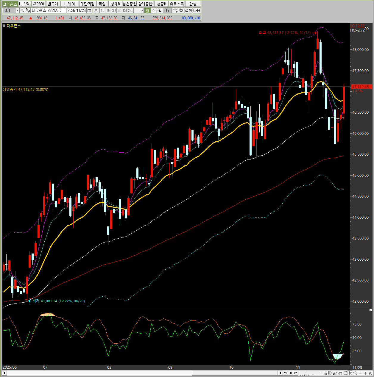 🚨 2025년 11월 25일 미국 증시 마감: 다우존스 1.43% 급등! 기술주는 숨고르기