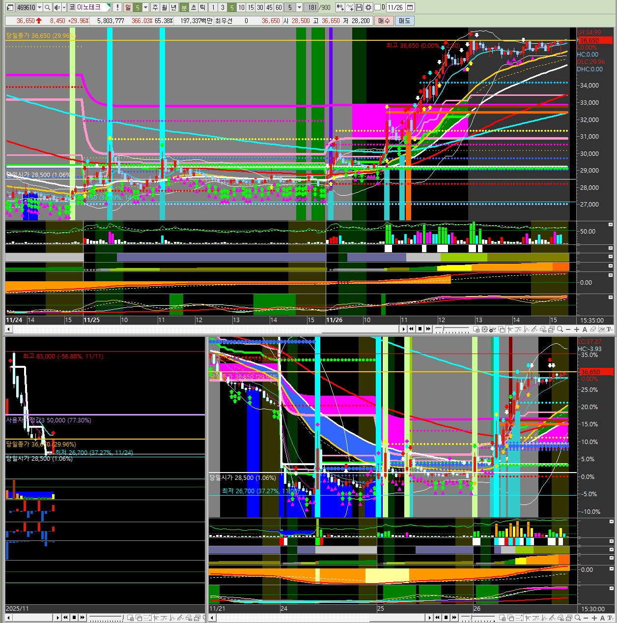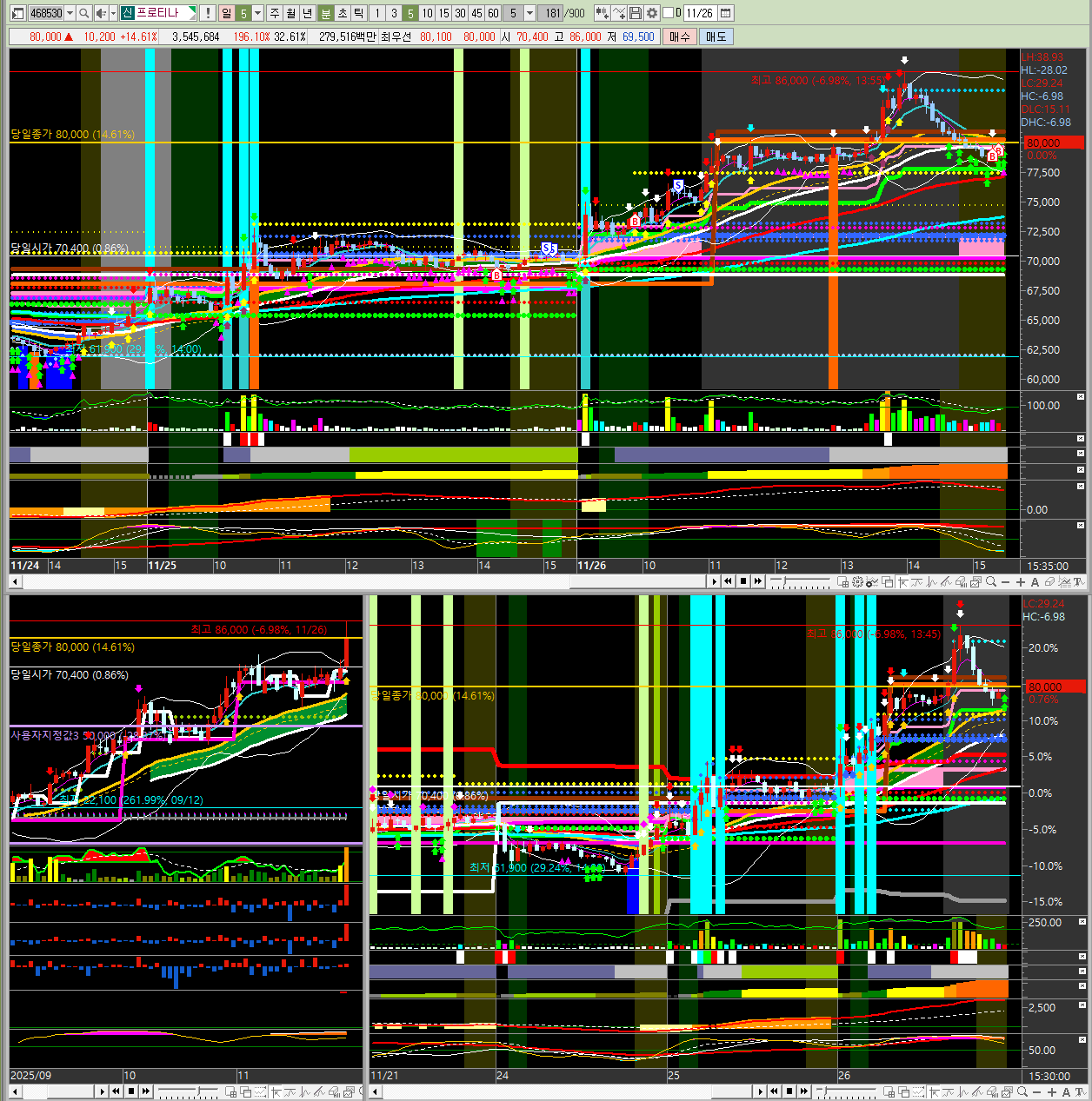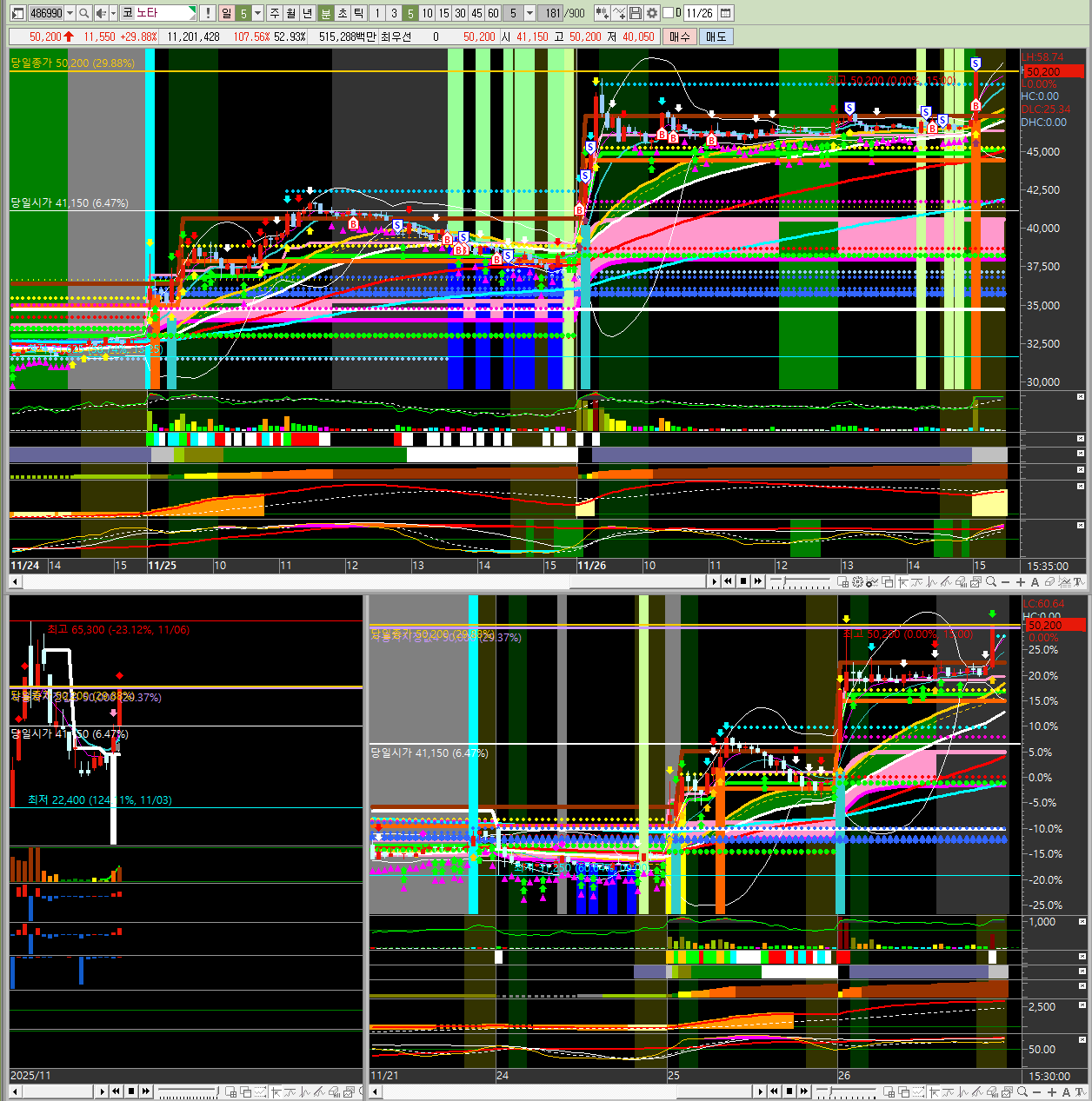 - 주요 모멘텀 : 29.89% 인적분할 이후 재상장 첫날을 맞이하면서 시장의 관심이 집중된 것으로 보입니다. 2025-11-24