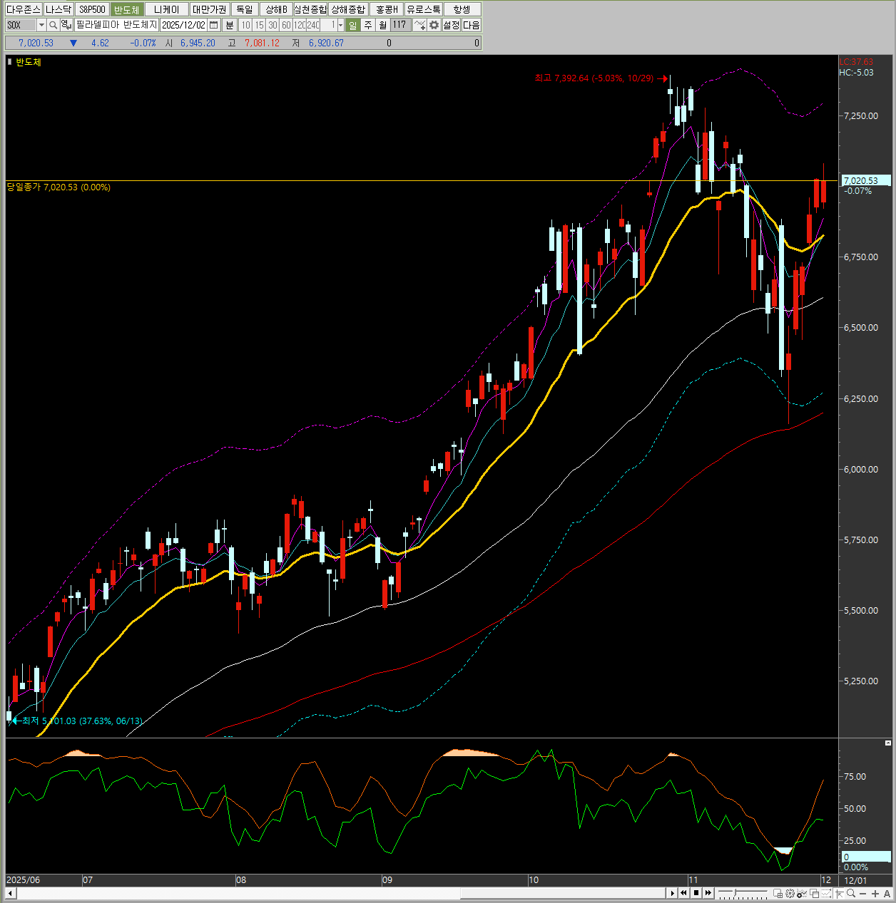 기술주 중심의 나스닥과 필라델피아 반도체 지수는 상대적으로 낙폭이 적었으나, 전반적인 약세 흐름을 벗어나지 못했습니다.