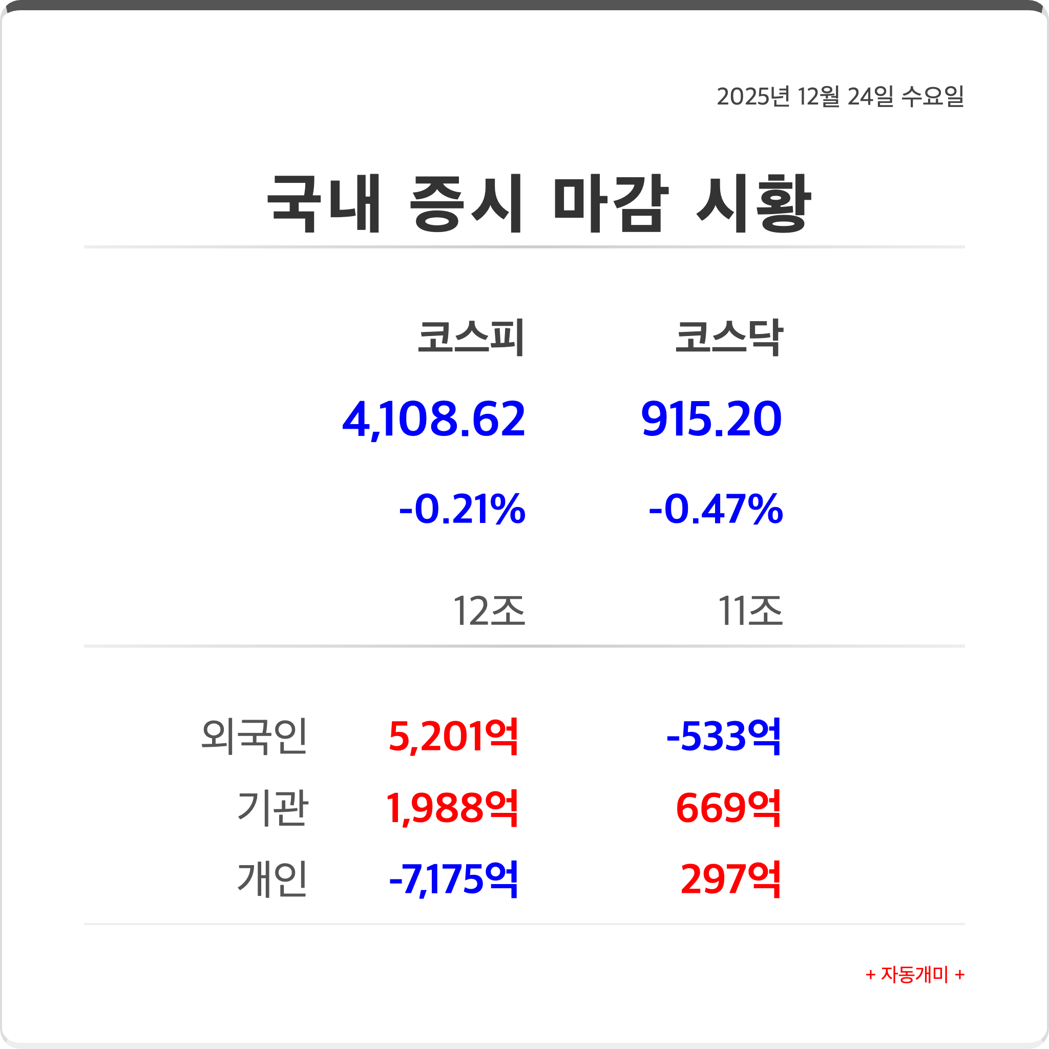 2025년 12월 24일 수요일 - 국내 증시 마감 지표