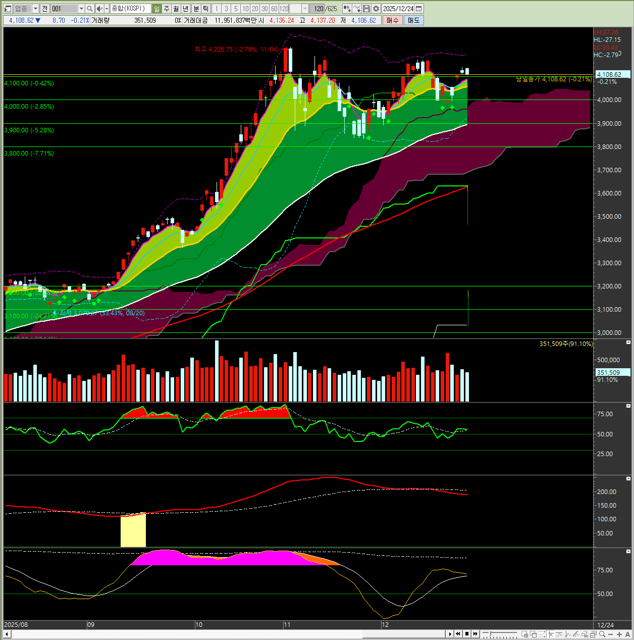 2025년 12월 24일 수요일, 크리스마스 이브를 맞이한 국내 증시는 선물 같은 상승세보다는 숨 고르기 장세가 이어졌습니다.