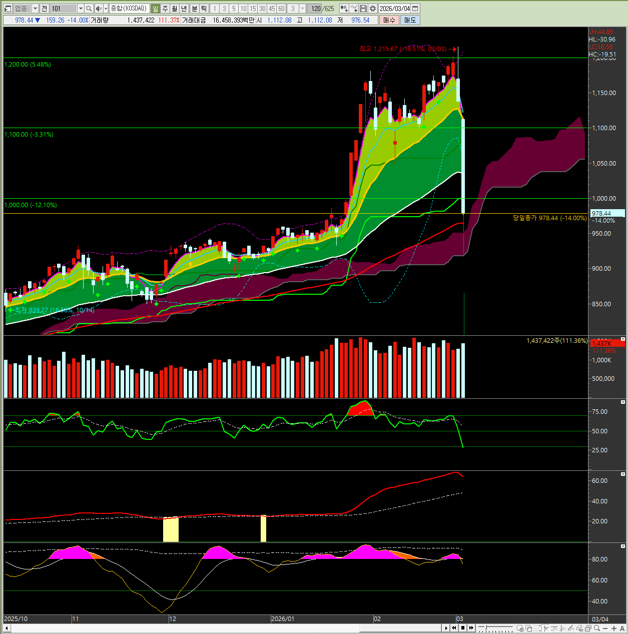 코스닥 역시 14.00% 하락하며 1,000선을 하회, 역대 최대 하락률을 기록했습니다.
