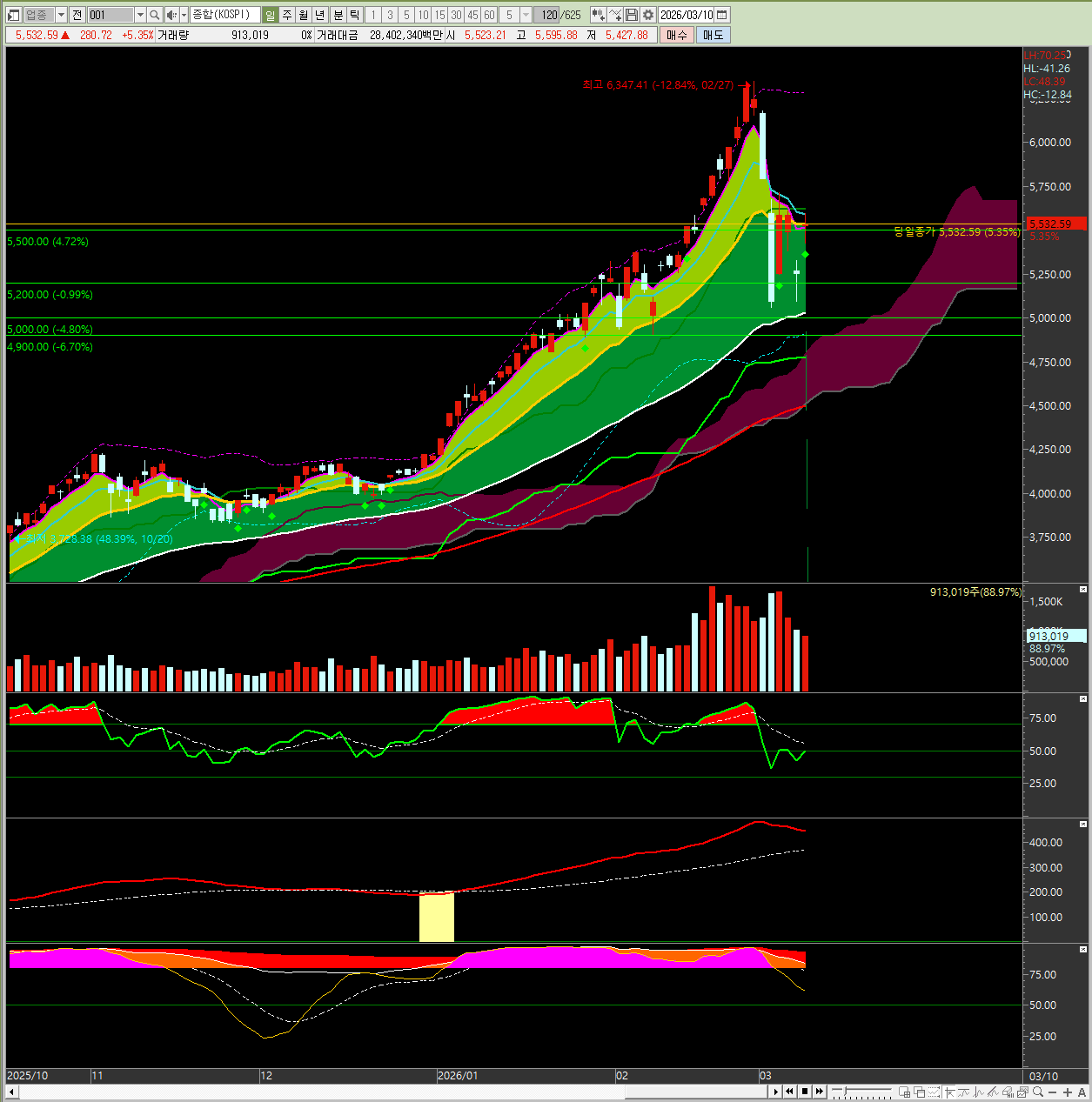 2026년 03월 10일 화요일 - 이란 전쟁 종식 기대감에 코스피 5%대 초급등 마감